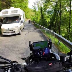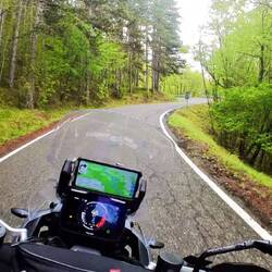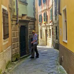 Nach dem ersten von vielen Pässen, nämlich dem ‚Passo die Penice‘, sind wir mit Sonnenschein nach Bobbio gefahren. Dieses wunderschön gelegene Dorf wurde 2019 als schönstes Dorf Italien gewählt und wir fanden: zu Recht! Nach einer ausgiebigen Begehung und Kaffeepause sind wir weitergefahren. Einige Kilometer später haben uns zwei fleissige Carabinieri rausgenommen und wollten unsere ‚Documenti‘ sehen. Alles war in Ordnung und wir konnten bald die nächsten Pässe in Angriff nehmen. Es wurde richtig einsam und Kurve reihte sich an Kurve. Kurz nach einer halbverlassenen Ortschaft war die Strasse aber gesperrt und wir mussten uns einen neuen Weg aus dem Gebirge suchen. Kurz beratschlagt, Motorräder gedreht und auf der neuen Route weitergefahren. Unzählige Kurven und vielen Pässe (darunter einer über 1500 MüM) später, konnten wir nach einer weiteren Kaffeepause zum ersten Mal durch die Bäume in der Ferne das Meer erblicken. Aber es dauerte noch über 1 Stunde - und viele viele Kurven - bevor wir oberhalb von Chiavari in unserem B & B ankamen.