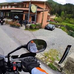 Den Rest des Tages verbrachten wir auf kleinen und kleinsten Strassen, immer wieder rauf und runter und in nördlicher Richtung. Höchster Punkt er heute der Passo delle Radici mit 1’529 MüM. Unterbrochen wurde unsere Kurvenhatz nur durch ein feines Mittagessen mit regionaler Küche und einem Kaffeehalt in einer Parkanlage mitten in einem grossen Wald. Einen Eindruck über die Strecke und die Gegend bekommt man im beigefügten Video.