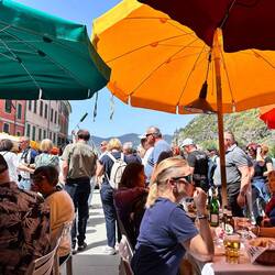 Angefangen haben wir den Tag mit einem netten Frühstück und einem kleinen Schwatz mit unseren Gastgebern. Danach ging es auf die Autobahn in Richtung La Spezia. Nach 30 km verliessen wir diese aber schon wieder und es ging auf sehr kurvenreichen Strassen nach Monterosso al Mare. Wir hatten ja nicht erwartet alleine zu sein, was wir aber in den nächsten Stunden in den Cinque Terre erlebten, war schon heftig. Reisebusse, Lastwagen, Camper, normale Autos und Fahrräder kämpften regelrecht um ihren Platz auf den sehr steilen und anspruchsvollen Strassen. Wir haben ein paar heikle Situationen beobachtet, waren aber zum Glück selber nie direkt beteiligt.