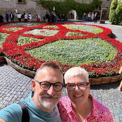 Wir haben Glück, denn erstens scheint die Sonne ☀️, die Temperaturen 🌡️ gehen weiter rauf und zweitens findet aktuell ein Stadtfest statt, für das die Plätze schön geschmückt wurden. So zu fahren, macht Spass und endlich können wir nach mehreren kalten Tagen die Gegend und die wärmenden Sonnenstrahlen geniessen. Wir hoffen, es geht weiter so!