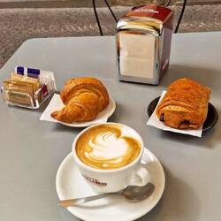 Die Konfiserie war ausserhalb der Altstadt in einem ganz normalen Wohnquartier gelegen. Beim Hinfahren dachten wir uns noch: „Ist das wirklich was?“. Als wir aber die Schlange Menschen sahen, die dort am Sonntagmorgen einkaufte resp. frühstückte, waren die Zweifel rasch weg. Die Auslage war der absolute Hammer, die Bedienung super freundlich und wir haben unsere Cornetti und Cappucini genossen.