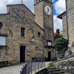 Die Burg der Stadtvögte von Lari ist leicht an ihrer unverwechselbaren runden Befestigungsanlage mit doppelter Ringmauer zu erkennen. Der älteste Teil der Burg, die heute teilweise noch erhalten ist, geht auf das frühe Mittelalter zurück. Wir umrunden die Burg und fühlen uns magisch von der „Bar Centrale“ angezogen. Zu Essen gibt es Spaghetti, die keine 40 Meter entfernt hergestellt werden (https://www.famigliamartelli.it). Das Essen schmeckt hervorragend, das Ambiente ist südländisch entspannt und wir setzen nach zwei feinen Expressi unsere Umrundung der Burg fort. Auf dem Weg zu unseren Bikes kommen wir an der Gelateria vorbei, wo wir auch noch kurz halt machen.