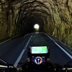 Endlich können wir wieder zu zweit aufbrechen! Um 08:45 waren die Maschinen gepackt und wir haben die Motoren gestartet. Mit wenig Verkehr aber starkem Föhnwind zum Gotthard hochgefahren und nach einer kleinen Pause am Rotlicht konnten wir bei 15 Grad in den Tunnel fahren.