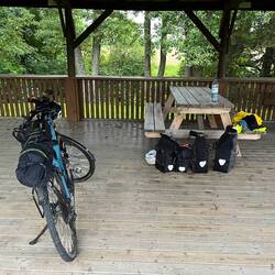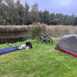 Gegen 12 Uhr baute ich in Zeitlupe mein Zelt ab und machte mein Fahrrad fahrbereit🚲