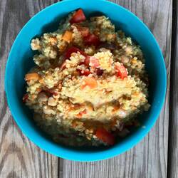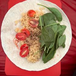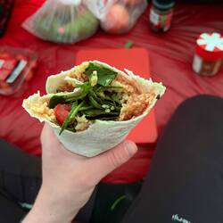 Im Zelt machte ich mir den dritten Tag infolge Wraps (jetzt ist die Packung alle😂) mit Bulgur, Tomaten und Spinat. 🌯
