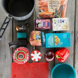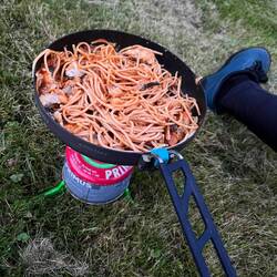 Ich erwärmte die Nudeln von vorgestern und aß auf meiner Picknickdecke. Es ist der letzte Abend in freier Natur🏞️