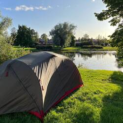 So lag ich früh und zufrieden im Zelt ⛺️ Ich habe mir ein kleines Stück Wiese ausgesucht hinter einem Fußballplatz😊