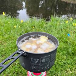 Der Abend war wirklich schön. Ich habe einen wunderschönen Platz an einem Kanal gefunden und kochte mir direkt am Kanal meine Kartoffeln und schnitt ein paar Möhren 🥔🥕Den Abend genoss ich sehr und freue mich auch schon auf morgen 🥰