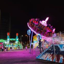 Cerca de allí había luces y música, era un parque de diversiones, compramos tickets para tres juegos: una montaña rusa con loop, autitos chocadores y "Evolution", que nos agitó en altura en ángulos y direcciones impredecibles.