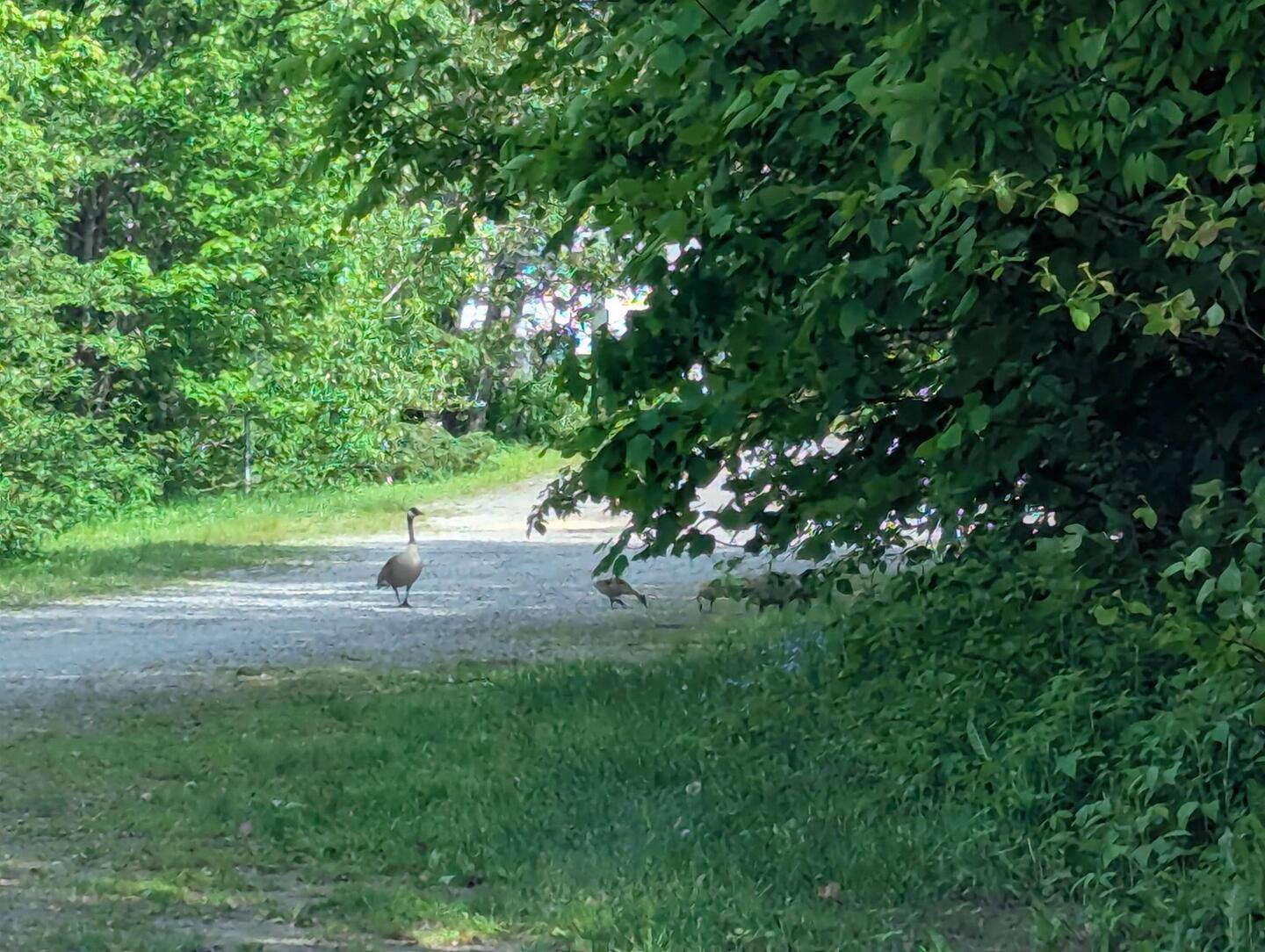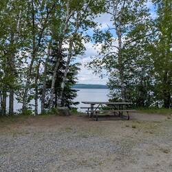 Cute little pull off with picnic tables, outhouses, and garbage cans. Greeted by a pair of geese who later revealed their young family. Lovely view of the lake.