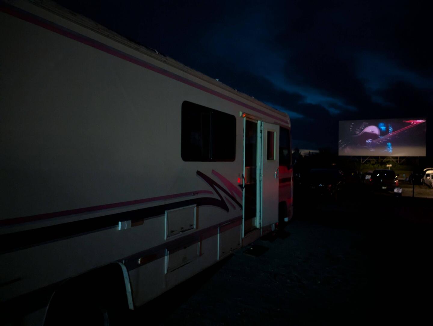 RVing at the drive-in. Good food, good movies. They even let us spend the night. (They don't lock the gate).