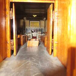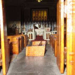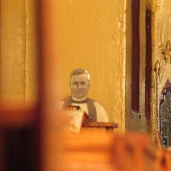 A bit of imagination was required here, with a much larger crowd gathering, and modern conveniences like stop lights and automobiles.