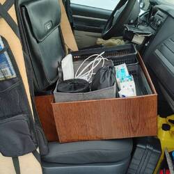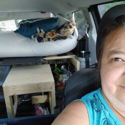 We don't carry much food when traveling. Grocery stores are abundant along the way. Our 'cooler' is actually the mid driver's side stow and go compartment. Being below the van floor, it staysLeer más
