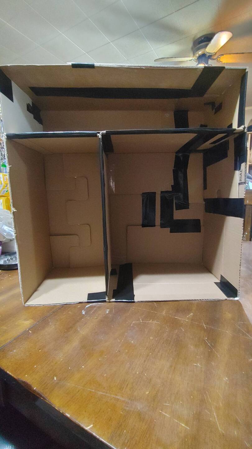 The two boxes were exactly the same size. I cut one like a tray for the top. The other I opened from one end, and cut the flap off atLeer más