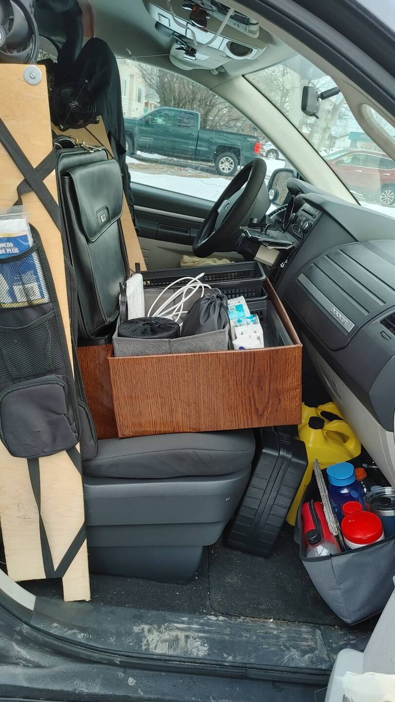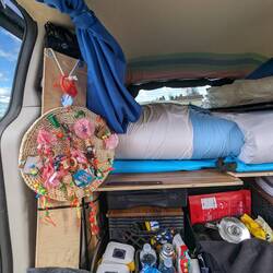 Insulation - wool blankets on floor & ceiling, window covers and curtains, blanket or curtain over rear hatch - helps keep the ambient temp up in the van. I've only camped down to about -12°C so far,Leer más