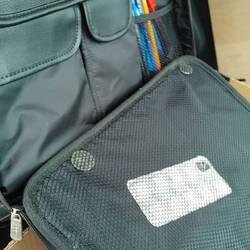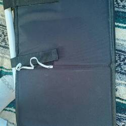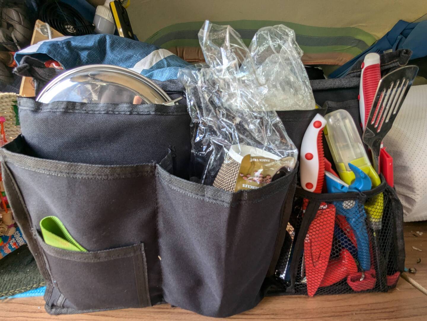 Bedside Hanging Storage converted to kitchen storage. Added cover fabric and elastic on back to hold tinfoil and plastic wrap.
