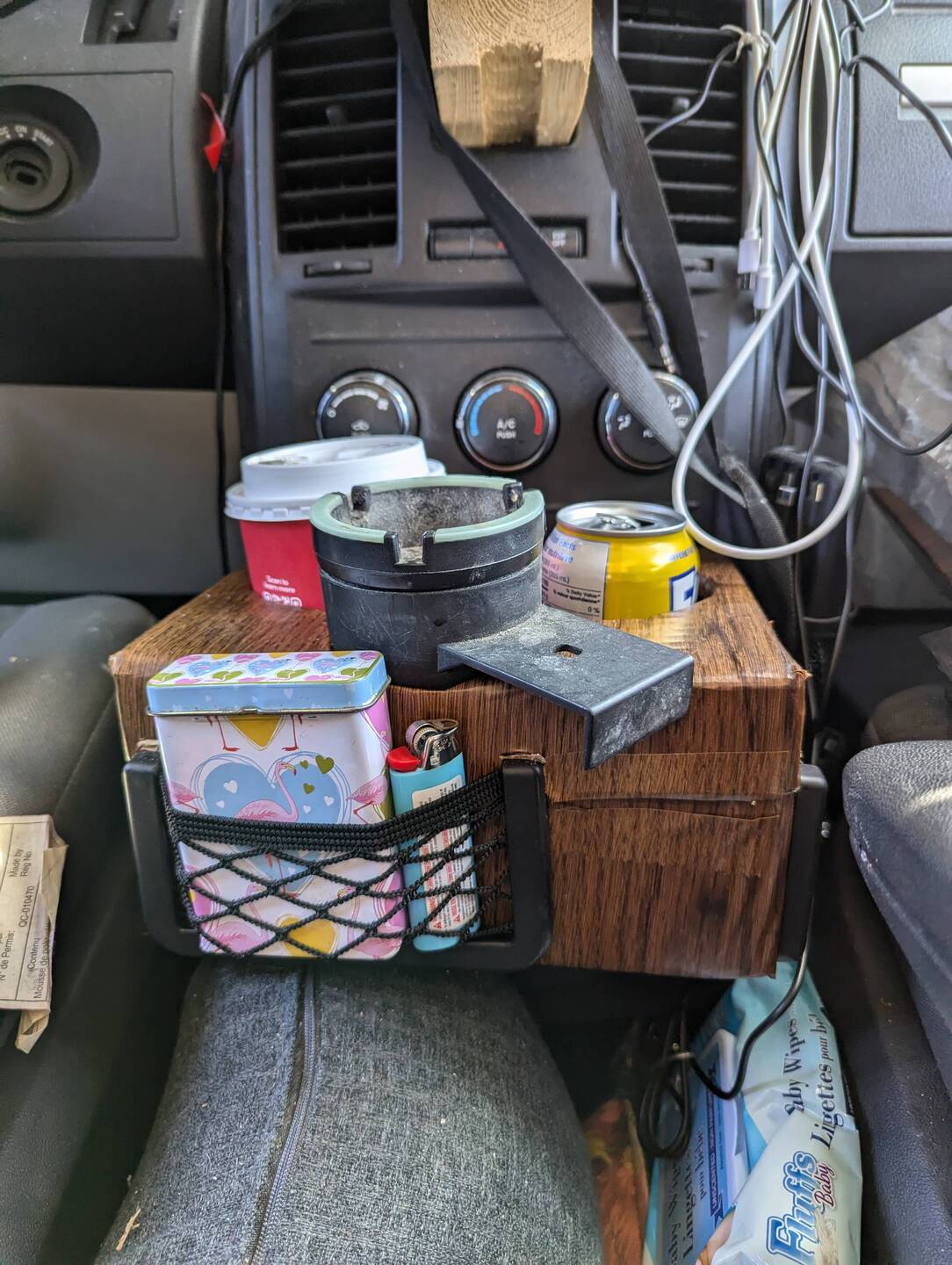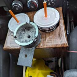 The original cup holder in the van sat too low for comfort, and only held 2 cups. I've been working on a template to improve the situation for awhile.