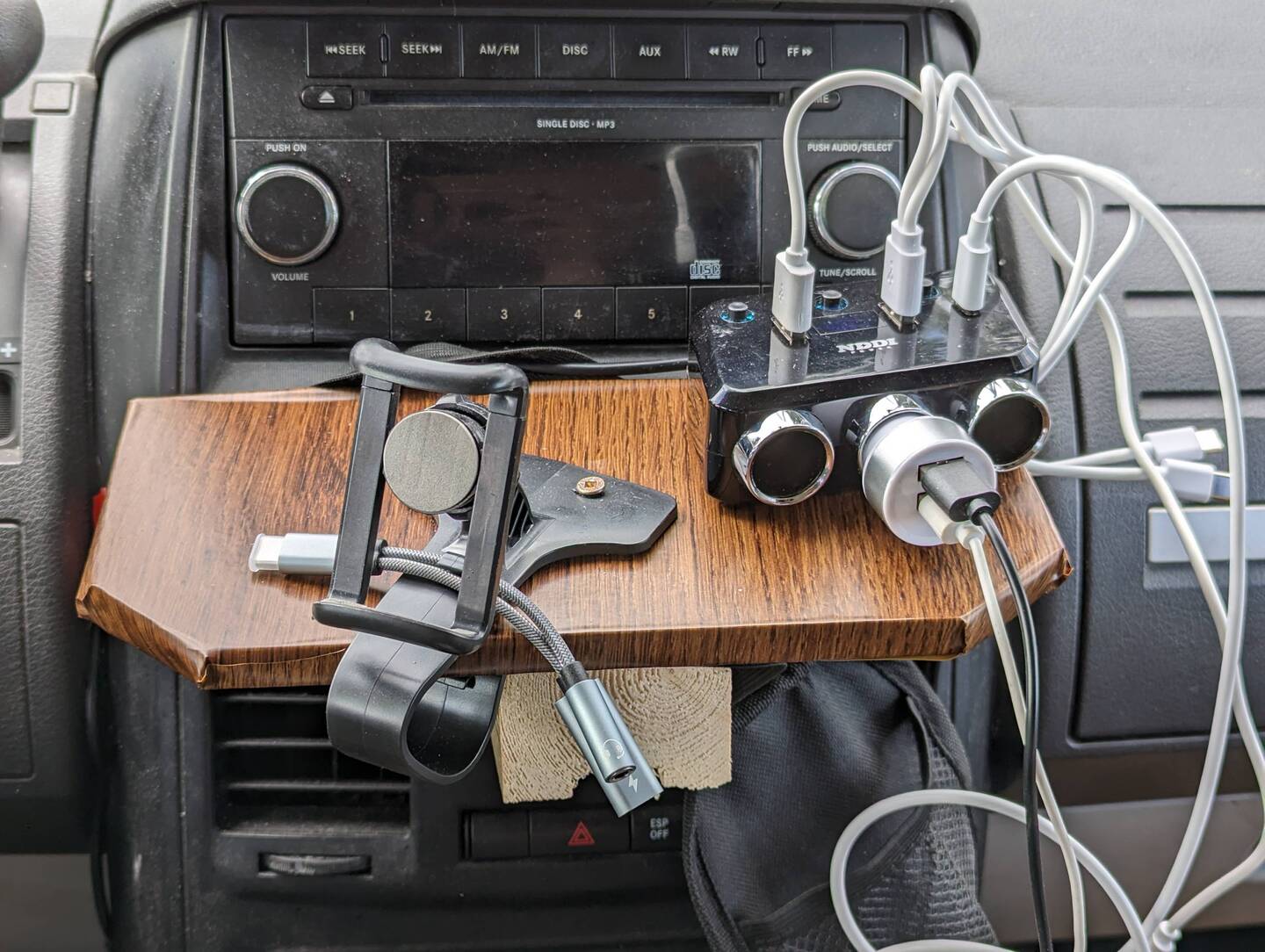 I initially tried a variety of different phone holders, in different locations, but I wasn't happy with any of them.