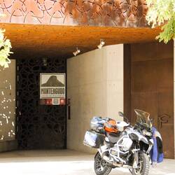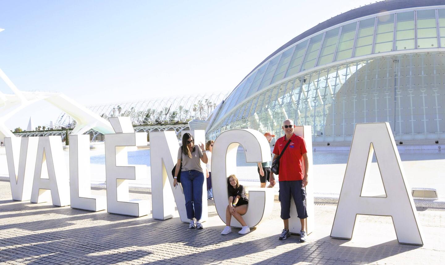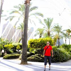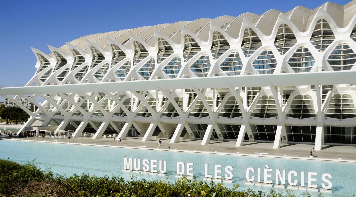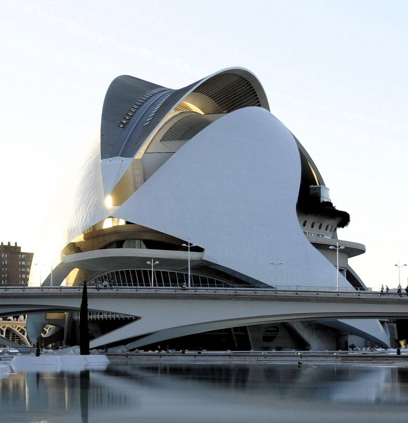 320 Meter lang, 60 Meter breit, Portal als Eingang zur „Stadt der Künste und Wissenschaften“. Mit von 55 fixierten und schwebenden weißen Bögen überdacht.
