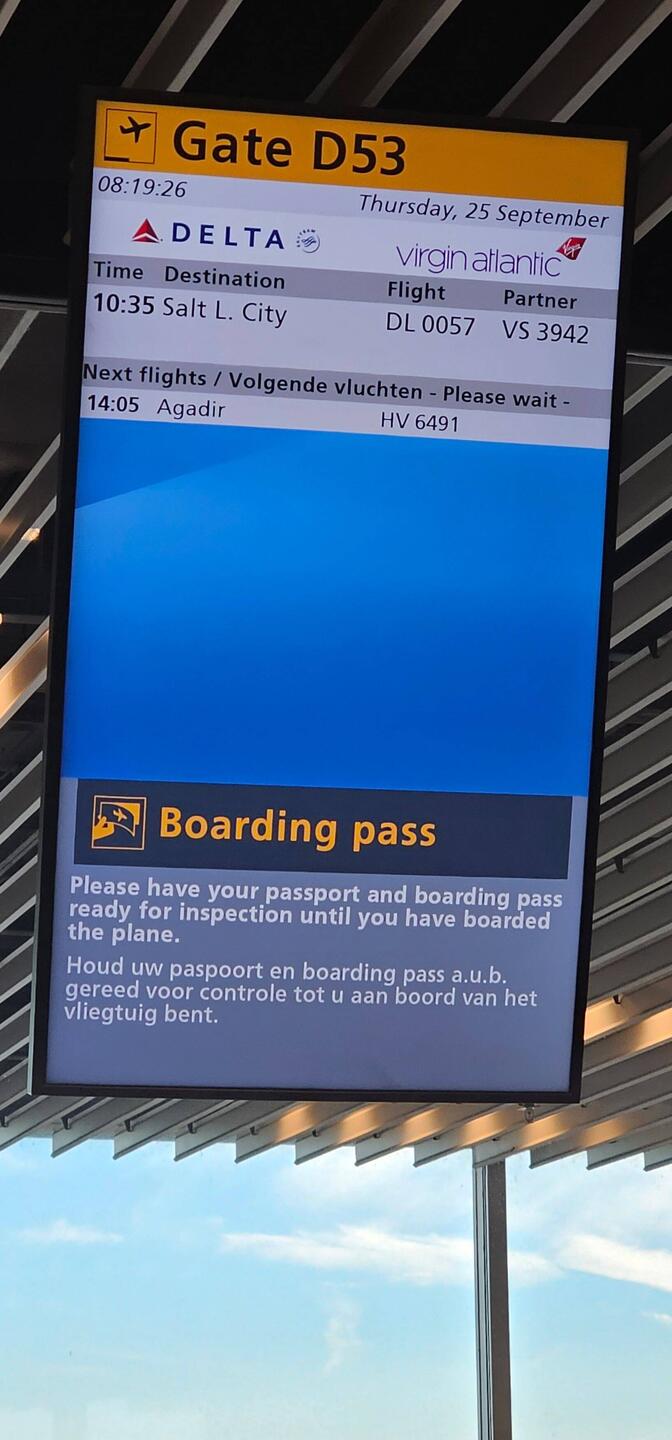 I made it to Amsterdam, so just waiting for my long flight to Salt Lake City!