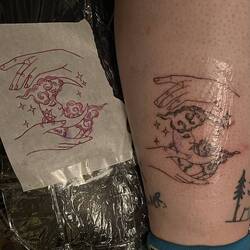 Schwupps fährt Lisa nach dem Essen kurz nach Hause, holt Ihren Kram und ich bin ein Tattoo reicher. 🥰