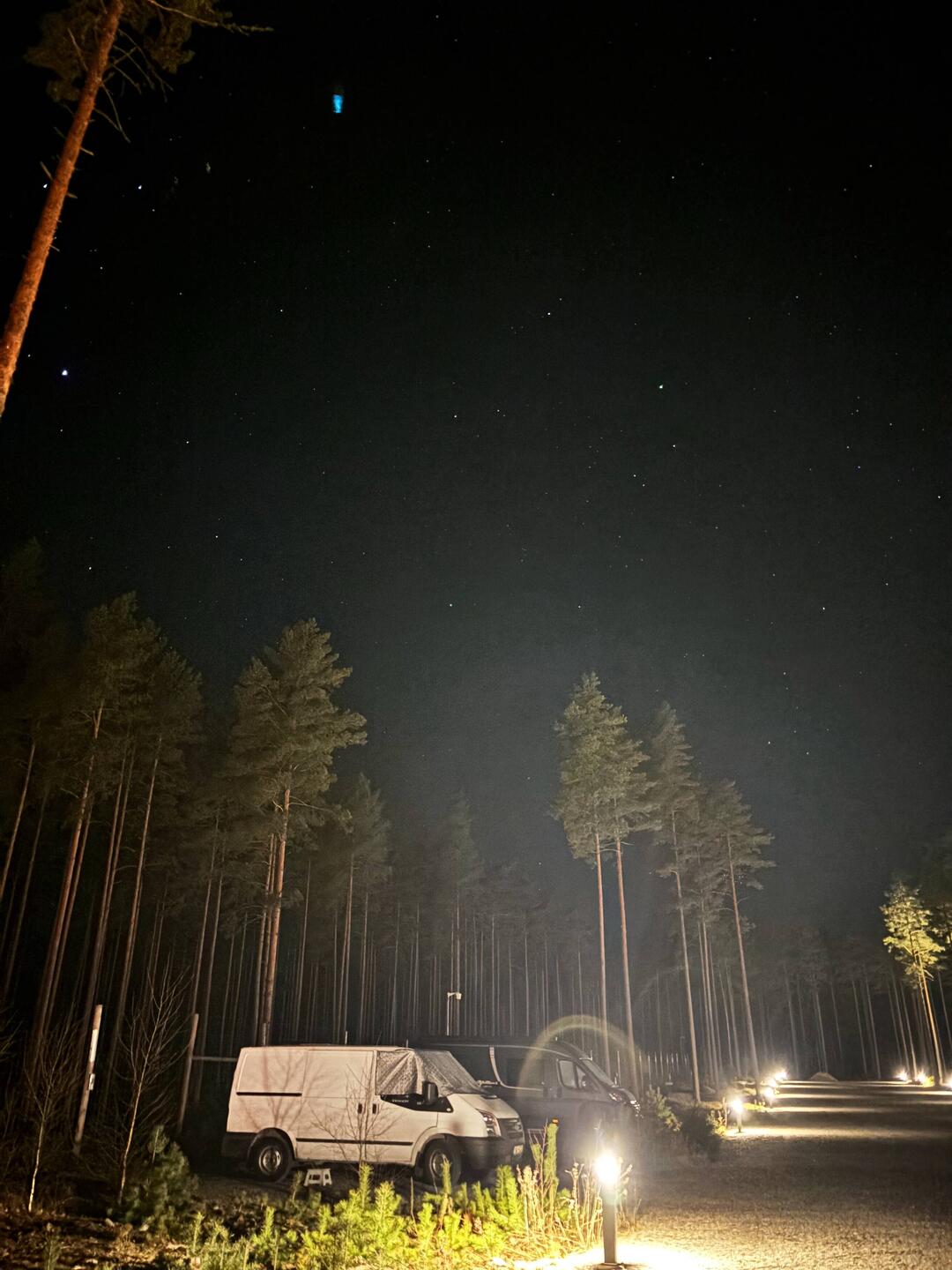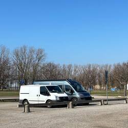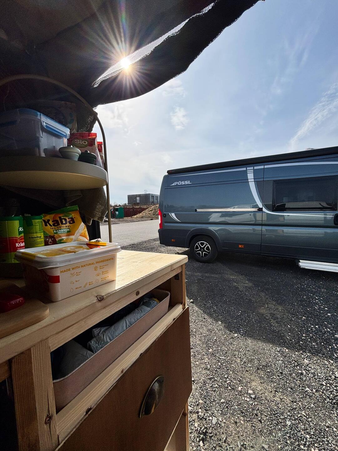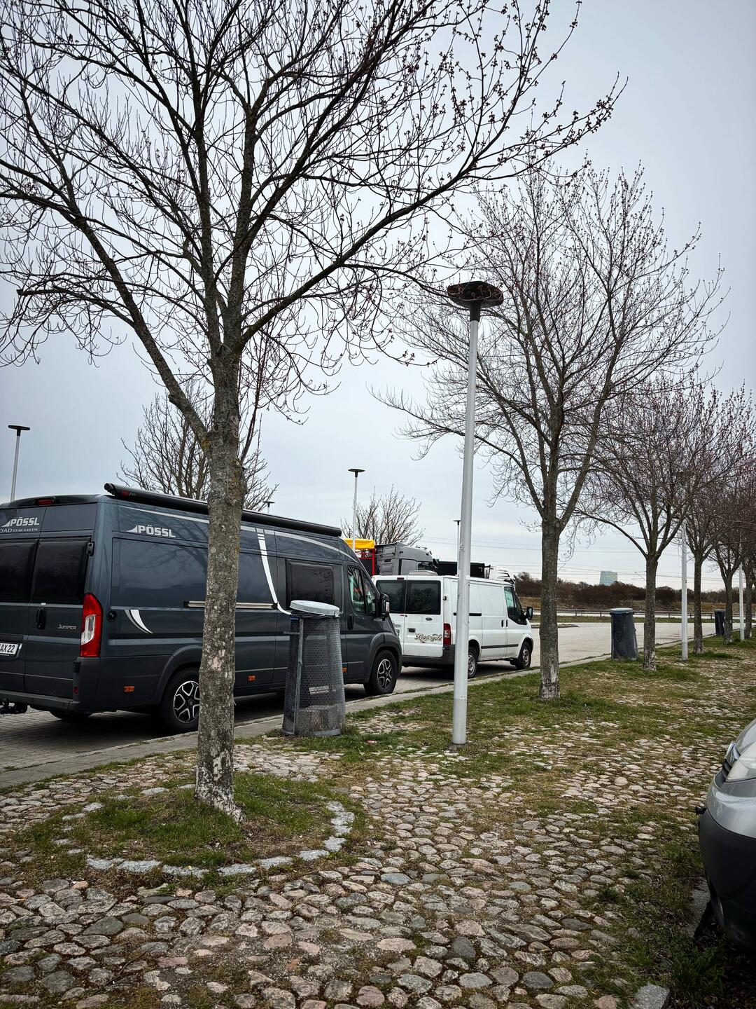 Wir sind am Schlafspot für die Nacht angekommen. Ist ne Menge los hier 😅 der Parkplatz ist gut besucht.