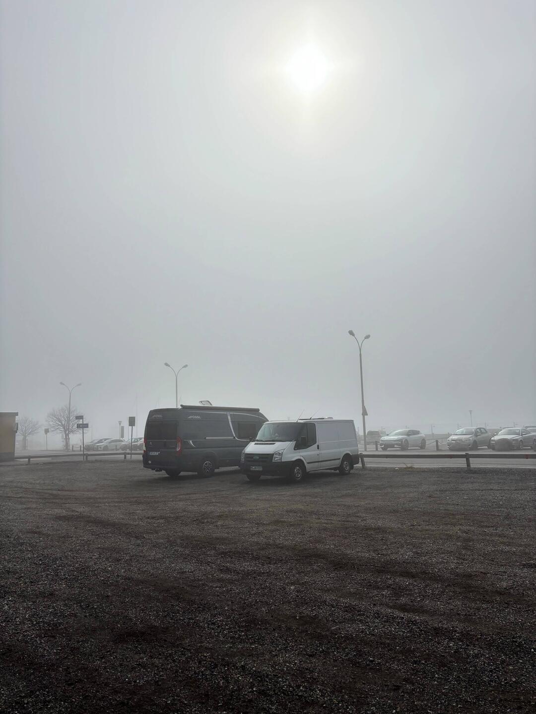 Aufgewacht sind wir heute Morgen in einer riesigen Nebelfront.