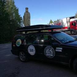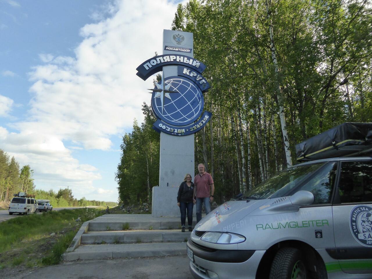 Wir überschreiten den Polarkreis und fahren gleich weiter auf der E105. Kaiser Karl ist auch dabei.