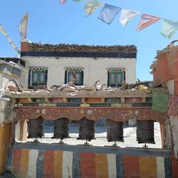 angekommen. Hier in Lo, im Land der Lopas, regierte lange Zeit der König Jigme Palbar Biste. Er war der 25. Herrscher in direkter Nachfolge des legendären Kriegers Ame Pal, der das Reich um 1400 gründete. In der Mustang-Region leben die Lopas, die kulturell und sprachlich gesehen, aus Tibet stammen. Tatsächlich erinnert mich hier alles an den Film: "Sieben Jahre in Tibet". Leider ist der König vor einigen Jahren gestorben und einen Nachfolger gibt es offiziell nicht, denn es verlor seine Unabhängigkeit und wurde von Nepal annektiert. Die nepalesische Regierung forderte den König, die Monarchie aufzulösen, was er auch widerstandslos tat. Vielleicht heißt es deswegen auch das verbotene Königreich Mustang- denn die Lopas fühlen sich noch immer mit ihrem König und ihrem Mustang verbunden. Auf drei Seiten von Tibet umgeben, war die Gegend lange Zeit ein unerreichbares Traumziel, da Reisende das Land bis zum Jahr 1992 nicht betreten durften. Heute dürfen bis zu 300 Reisende pro Jahr ins Land kommen, doch diese Zahl wird nicht mal erreicht, da die Infrastruktur für Reisende nicht gegeben ist. So war es mir z.B. eine gesamte Woche lang nicht möglich zu duschen, da es dafür einfach kein Wasser gab. Auf dem gesamten Mustang-Trip komme ich immer wieder an den Tempeln der lamaistisch-tibetischen Kultur vorbei. Höhepunkt ist schliesslich der buddhistische, in Lo Manthang thronende Tempel, Jampa lhakhang. Drinnen sind drei riesengroßen Buddhastatuen anzutreffen: Buddha der Vergangenheit, Buddha der Gegenwart und Buddha der Zukunft. Leider hörten da die Englischkenntnisse des Mönchs auf, der uns netterweise herumführte. Die Wände des Tempels sind mit allerhand düster wirkenden und uralten Mandalas aus dem 15. Jahrhundert bemalt. Lo Manthang mutet mit seinem Königspalast, dem Kloster und den Häusern aus Steinen, mittelalterlich an. Jedoch ist der kleine Ort übersät mit buddhistischer Symbolik, welcher eine Ruhe und Mystik ausstrahlt. Was allerdings etwas befremdlich für mich ist, ist die Tatsache, dass es hier, trotz dessen es nicht hinduistisch ist, noch ein strenges, religiöses Kastensystem gibt. In einigen Situation bekomme ich die Ausgrenzung eines Menschen einer unteren Kaste (Sudras) auch mit, weil dieser weder das Wasser berühren, geschweige denn trinken darf, was mein scheinbar einer höheren Kaste angehöriger Führer Manoj mir und anderen Anwesenden angeboten hat. Als Außenstehende war das für mich schwer auszuhalten, jedoch für alle anderen selbstverständlich.