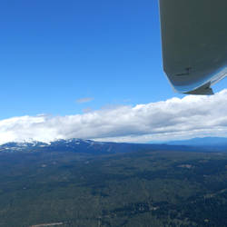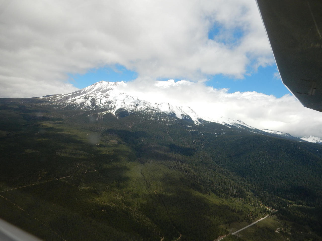 An impressive dormant volcano at 14162 ft. Its mass affects the local weather. Much of the upper part is obscured by a belt of clouds.
