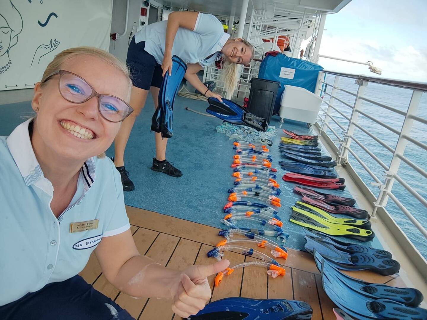 In diesem Sinne gab es gleich ein neues Shooting, bei dem jeder eine Aufgabe des Touristik-Teams dargestellt hat: Shuffleboard, An- und Abreiseorganisation, derRead more