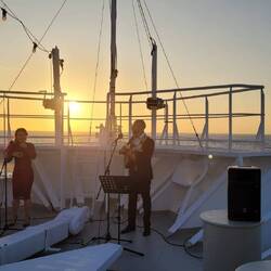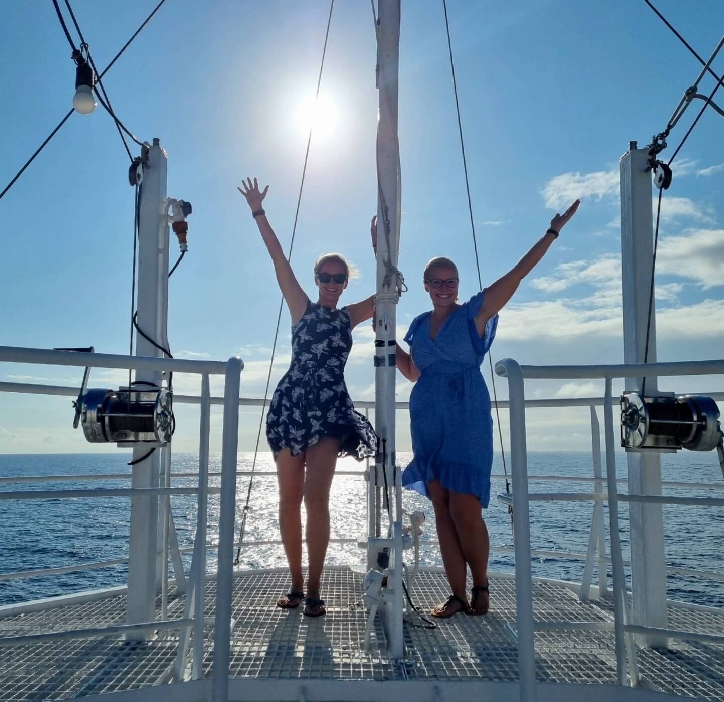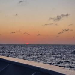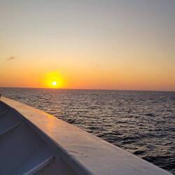 Unserem Ziel immer näher kommend, haben wir bei einem leckeren Sundowner schon mal auf bereits gut überstandenen 7 Seetage angestoßen. Es folgen zwei weitere und dann ist es endlich so weit...