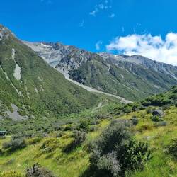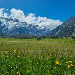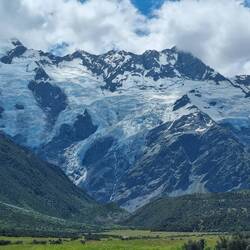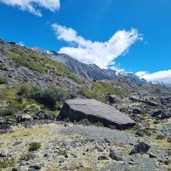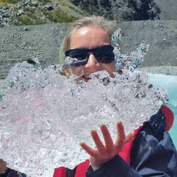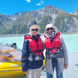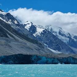 Was eine atemberaubende Landschaft! Im Mount-Cook-Nationalpark ging es zu einem der wenigen zugänglichen Gletscherseen der Welt, in denen sich Eisberge befinden.