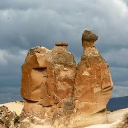 Imagination Valley lived up to its name - like lying in the grass looking at clouds and seeing all sorts of weird and wonderful animals etc, so too could you see things amongst the rock sculptures. Most obviously we saw a couple dancing and a camel. We hiked through the rock formations and had fun exploring. Next we went to an underground city. It was kinda like Coober Pedy but a fair bit prettier. Like an underground labyrinth complete with massive wheels that were used to roll across the doorway in the event of an “invasion”. The locals could then escape via another exit whereas there was no way to roll the wheel from the other side. Very clever.
