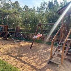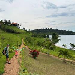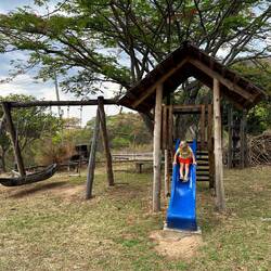Dann geht’s zum Camping – einem Aktivitätszentrum, das Stellplätze anbietet. Hier kann man Ziplining machen, reiten, Quad fahren. Es gibt eine Hüpfburg, ein Trampolin und einen Spielplatz. Wir stehen oben auf einer kleinen Terrasse, ohne Wasseranschluss, aber wir improvisieren wie immer. Marie ist völlig aus dem Häuschen und hat die Hüpfburg und das Trampolin fast für sich allein.
