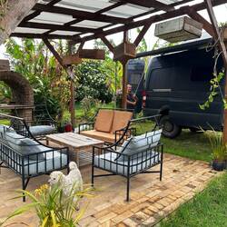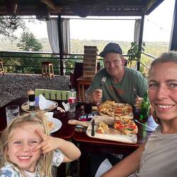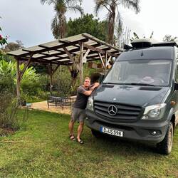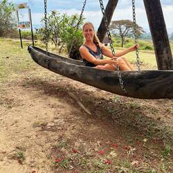 Später lernen wir Sonja kennen, eine Deutsche, etwa fünfzig, die hier gerade ein Workaway macht. Sie ist erst seit einem Tag da, voller Energie und offen für Neues. Wir kommen schnell ins Gespräch – sie findet unsere Reise spannend, und wir ihre Lebensweise. Sie reist durch Afrika, hilft zwischendurch auf Camps oder Lodges aus, macht Safaris und kehrt ab und zu nach Hause zurück. Ihr Kind ist schon erwachsen, und sie genießt ihre Freiheit. Ihre Geschichte fasziniert uns.