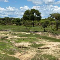 Nach einiger Zeit steht die Löwin auf, streckt sich und zieht langsam weiter in den Busch, wo wir mit dem Auto nicht folgen können. Also fahren wir selbst weiter, setzen unsere Safari fort und sehen noch viele andere Tiere. Doch je weiter wir kommen, desto sandiger wird die Piste, und bald begegnen wir kaum noch Tieren. Die meisten halten sich wohl in der Nähe des Wassers auf, denn es hat Monate lang nicht geregnet. Wir machen eine kleine Pause und kehren dann um.