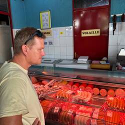 Dort steuern wir zuerst die holländische Bäckerei an, „Brot aus Amsterdam“. Schon der Duft ist himmlisch. Es gibt Sauerteigbrot, Joghurt, Milch, Croissants – wir kaufen begeistert ein. Anschließend suchen wir eigentlich einen Supermarkt, finden dafür aber etwas viel Überraschenderes: eine deutsche Metzgerei in Kigali. Aufschnitt, Fleisch, Wiener, Leberkäse – ein kleines Fest. Importware wie Haribo oder Nutella lassen wir wegen der absurden Preise (7 € bzw. 15 €) stehen, aber wir decken uns sonst gut ein.