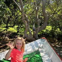 Den ganzen Tag verbringen wir im Camp. Die Sonne scheint, Marie spielt auf der Schaukel und auf dem kleinen Klettergerüst im Garten. Alles ist gepflegt und liebevoll angelegt. Plötzlich wird es unruhig: Die Putzfrau ruft nach den Eigentümern – am Abfluss bewegt sich etwas. Eine kleine Kobra kriecht heraus!