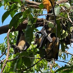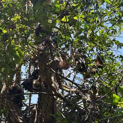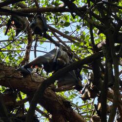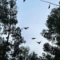 Dann beginnt unsere Bootstour. Erste Station: die Napoleoninsel, deren Silhouette an Napoleons Dreispitz erinnert. Schon beim Anlegen hören wir tausende Flughunde, die in den Bäumen kreischen, flattern und sich bewegen wie ein lebendiges Dach aus Flügeln.