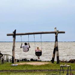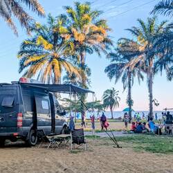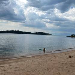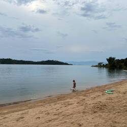 Wir genießen diese zwei Tage in vollen Zügen. Wir schwimmen viel, faulenzen, waschen Wäsche und lassen sie im Wind trocknen. Abends bringen uns die Gastgeber ein einfaches, aber durchaus leckeres Essen direkt an unseren Stellplatz. So sitzen wir am Ufer, hören das leise Plätschern der Wellen und fühlen uns unglaublich wohl.