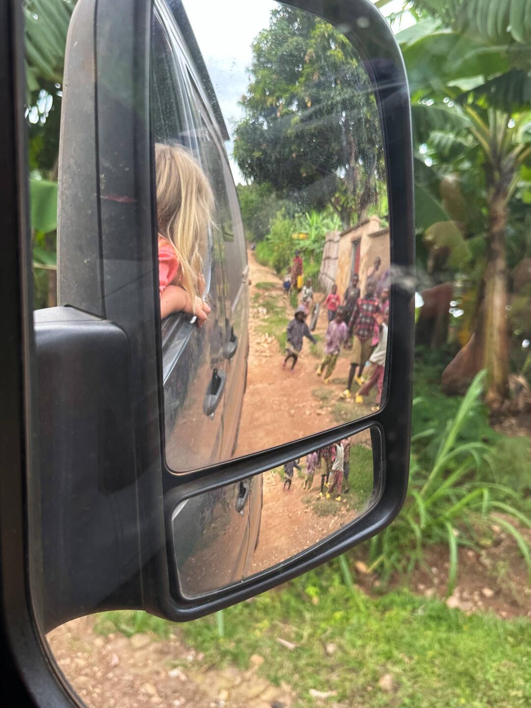 Am Morgen stehen schon Kinder um unser Auto. Marie geht sofort raus, spielt mit ihnen, holt ihre Spielfiguren. Die Kinder wollen sie am liebsten behalten und stecken sie in ihre Taschen. Ein paar Lacher später haben wir alles wieder beisammen und fahren weiter Richtung Hauptstadt Kigali.