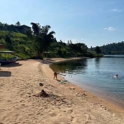 Hier am Mutanda-See, nördlich von Kisoro, fühlt sich alles ein bisschen wie ein heimliches kleines Paradies an. Schon die Anfahrt ins Community-Eco-Camp ist abenteuerlich – ein holpriger Weg, bei dem wir uns mehrmals fragen, ob wir wirklich richtig sind. Doch als wir schließlich am Ufer stehen, direkt einen Meter vom See entfernt, wissen wir, genau hier wollen wir sein. Einfach, basic, aber unglaublich herzlich und mit jedem Übernachtungsgast wird die lokale Community unterstützt.
