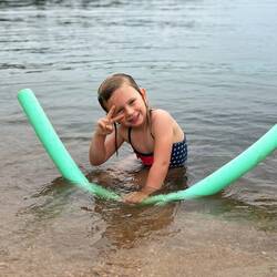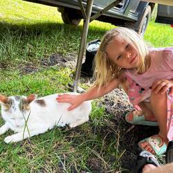Unser nächstes Ziel: ein Campingplatz mit Pool. Kaum angekommen, springen wir ins Wasser. Marie quietscht vor Freude und springt immer wieder hinein. Später stoßen noch niederländische Jungs und eine Engländerin dazu – es wird lebhaft, freundlich, fröhlich. Später waschen wir noch Wäsche, die in der heißen Luft in Minuten trocknet.