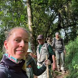 Nach einer Stunde ziehen sich die Gorillas langsam zurück, und wir machen uns ebenfalls auf den Weg. Gegen halb eins kommen wir wieder am Ausgangspunkt an, nach insgesamt dreieinhalb Stunden Trekking. Regina strahlt. Dieser Tag, dieses Erlebnis ist eine Erinnerung fürs Leben.