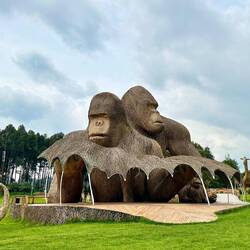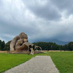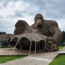 Nach der Ausstellung fahren wir weiter zu einer großen Gorilla-Skulptur aus Stroh und Holz, die majestätisch am Wegesrand steht. Ein letztes Foto, bevor unsere Reise weitergeht. Dann rollen wir wieder Richtung Grenze – aber erst noch machen wir Halt im kleinen Café, um gemütlich Mittag zu essen, bevor das nächste Kapitel unserer Reise beginnt.Read more