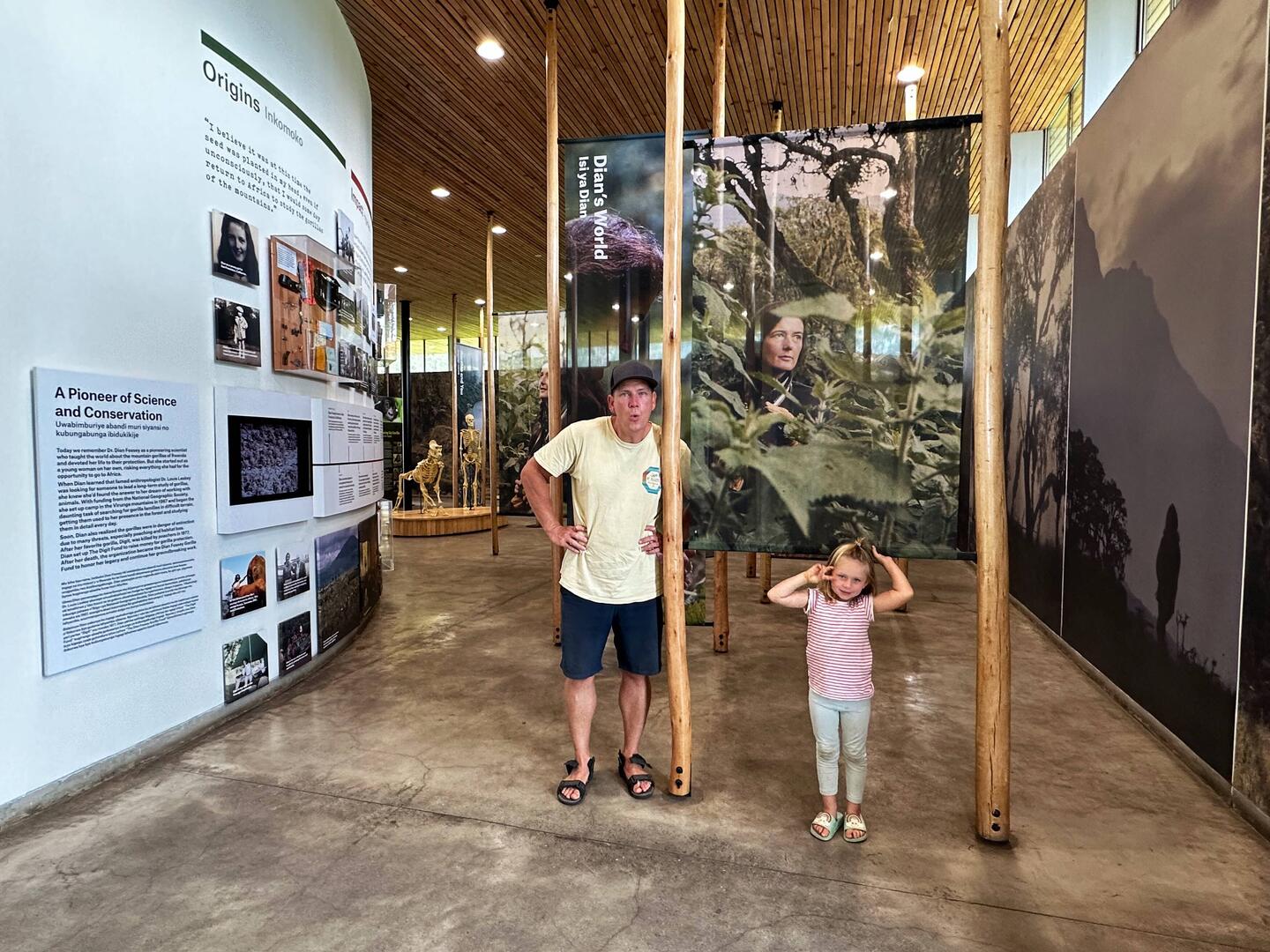 Stattdessen besuchen wir die Dian-Fossey-Ausstellung – und sie überrascht uns sofort. Sie ist liebevoll gestaltet, sehr informativ und gleichzeitig emotional berührend. Wir erfahren viel über Fosseys unermüdliche Arbeit, ihren Kampf für den Schutz der Gorillas und auch die vielen Herausforderungen, die sie mit Wilderern und Zooeinkäufern hatte. Die Tiere waren damals extrem bedroht, nicht nur durch Lebensraumverlust, sondern auch durch illegalen Handel. Immer wieder wurden Gorillas getötet und Babys gefangen genommen, um sie an Zoos zu verkaufen. Die Ausstellung erzählt davon behutsam, aber eindringlich, und macht deutlich, wie viel Mut und Entschlossenheit Fossey aufgebracht hat, um diese Tiere zu schützen.