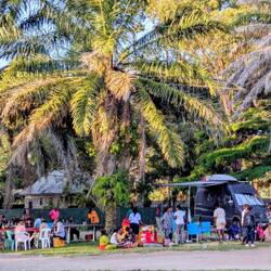 Die Belgier hatten wir bereits einen Tag zuvor no auf der Straße gesehen, ein junges Paar auf großer Afrikareise. Und die Schweizer sind eine Überraschung: Mario ist ein Agent für Fahrzeugverschiffungen, den wir bereits kontaktiert hatten! Er organisiert Transporte von Mombasa in den Oman. So kommen wir schnell ins Gespräch – über Reisen, Autos, Grenzen und das große Abenteuer Afrika. Es ist heute sogar sein 66. Geburtstag. Es fühlt sich an, als würde uns der Zufall hier ganz bewusst treffen.