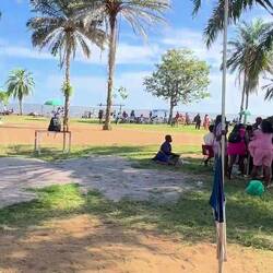 Ein paar einheimische Kinder kommen vorbei und spielen mit Marie. Es ist freundlich, aber auch schwierig alle Spielsachen zu behalten. Wir geben ihnen Mangos und Marie bekommt im letzten Moment ihren Ball zurück.
