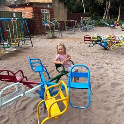Schließlich sitzen wir am Feuer, grillen unser Fleisch und lassen den trubeligen Tag ausklingen, während Marie noch ein letztes Mal herumhüpft. Am nächsten Morgen ist sie wieder auf der Hüpfburg, dem Trampolin, dem Spielplatz – die vierjährige Marie komplett in ihrem Element. Dann packen wir zusammen und fahren weiter, erfüllt von all den Eindrücken, die Ruanda uns an diesem kurzen Stück gezeigt hat.Read more